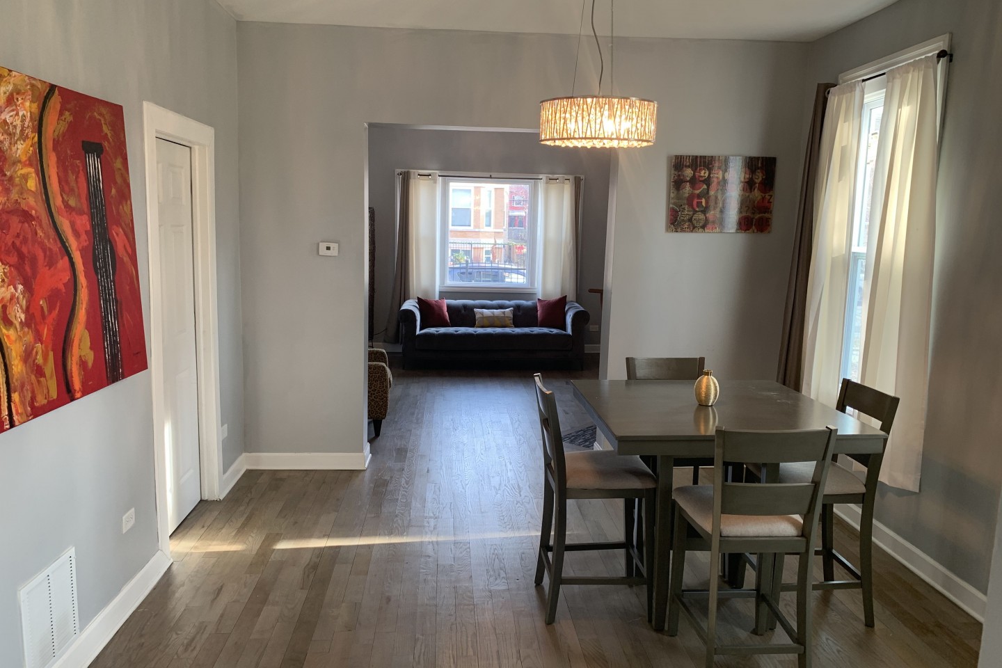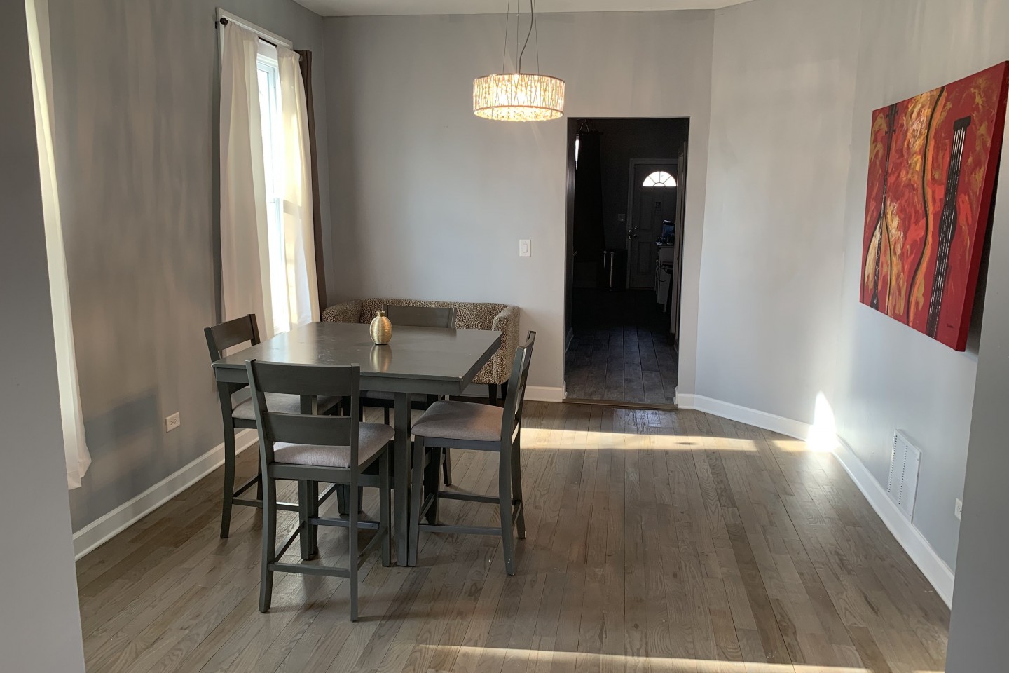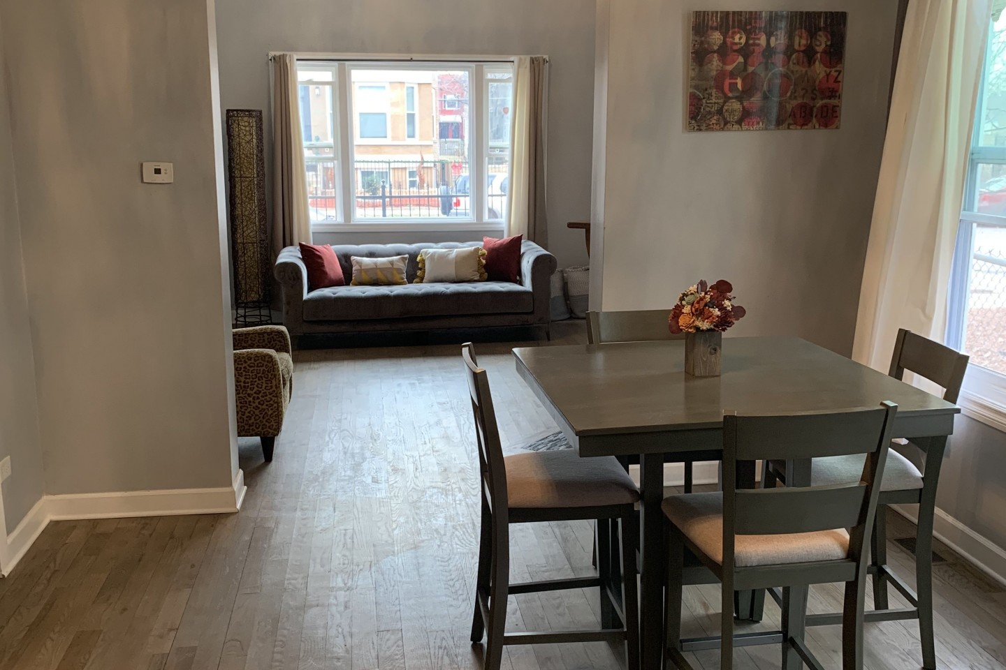 Beautiful two bedroom apartment on the first floor of a two unit building in the hotly sought Woodlawn community. This beauty has elegant finishes yet modern appeal . Minutes from University of Chicago campus. Perfectly positioned two blocks away from the 63rd and cottage green line “el” stop and bus line. Minutes in walking distance from Jewel Osco as well as the Historic Daley’s restaurant. Downtown Chicago is a 10 min car ride away! TV Roku, Youtube, NetFlix, Wi-Fi